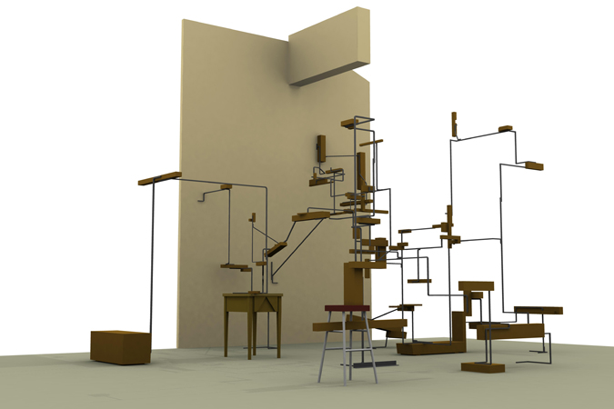 Going Home Against the Onshore Breeze (Digital reconstruction) 2000 Wood, steel 11’2” x 18’ x 17’5” 340 x 550 x 530 cm