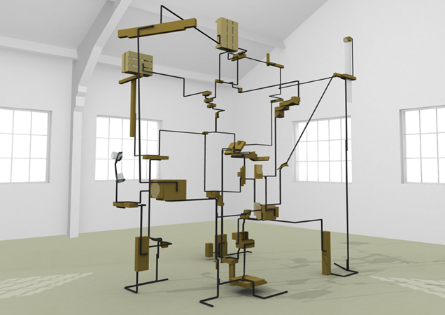 Neighbours (Digital reconstruction) 2009 Wood, steel, glass, acrylic 12’1” x 13’2” x 10’3” 368 x 401 x 312 cm